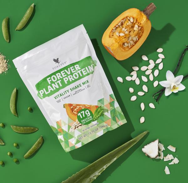 Με 17 γραμμάρια πρωτεΐνης ανά μερίδα, το Forever Plant Protein™ είναι μια vegan σύνθεση που δεν περιέχει γαλακτοκομικά και σόγια. Με νόστιμη, γεύση βανίλιας και λεία υφή, σε αντίθεση με πολλές πρωτεΐνες φυτικής προέλευσης. Η πρωτεΐνη μπιζελιού και κολοκύθας συμβάλλει στη λειτουργία των φυσιολογικών οστών και στην ανάπτυξη και διατήρηση της μυϊκής μάζας.