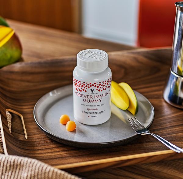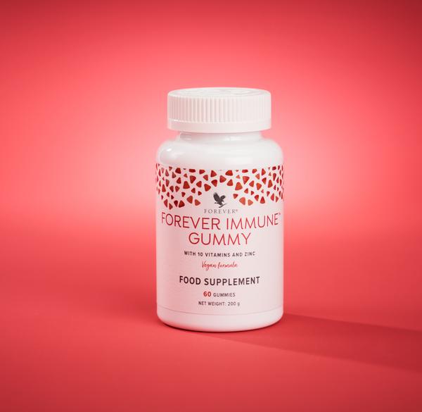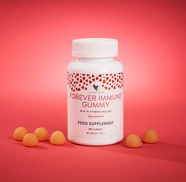 Το Forever Immune Gummy είναι ένα φυσικής προέλευσης μασώμενο συμπλήρωμα. Είναι εύκολο στη λήψη και λιγότερο πιθανό να κολλάει ή να λιώνει σε θερμά κλίματα. Επωφεληθείτε από 10 βιταμίνες και ψευδάργυρο που συνεισφέρουν στη φυσιολογική λειτουργία του ανοσοποιητικού συστήματος. Με φυσική γλυκιά τροπική γεύση το Forever Immune Gummy: